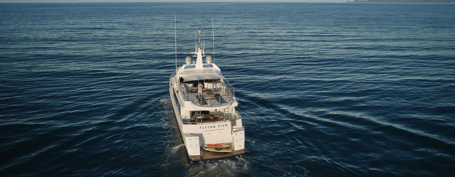 Masterfully designed to offer open, light-filled spaces and exceptional comfort at sea, FLYING FISH features a heated jacuzzi, relaxed seating areas,and 360-degree views, ideal for alfresco dining or evening cocktails. Inside,guests enjoy a beautifully appointed saloon, formal dining area, and four spacious guest suites, each with private ensuite. The master cabin boasts full-beam width and luxury finishes.Her high-performance tenders are perfect for reef exploration, snorkelling trips, and guided island visits. Every charter is enhanced with tailored menus, onboard dive gear, watersports equipment, anda highly attentive crew delivering an extraordinary level of personalised service
